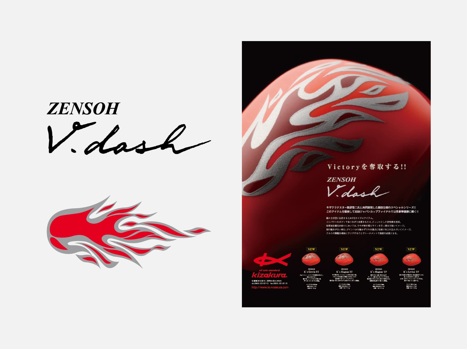 性能上は装飾が不要なウキに、あえてコレクター欲を掻き立てるようグラフィックデザインを施したもの。V.dashの炎のマークはひとつひとつ職人の手仕事によってシールを重ねられており、キザクラのウキづくりへの思いをデザインに落とし込みました。プロダクトの形状に合わせ、平面とは違うデータのつくりをしています。