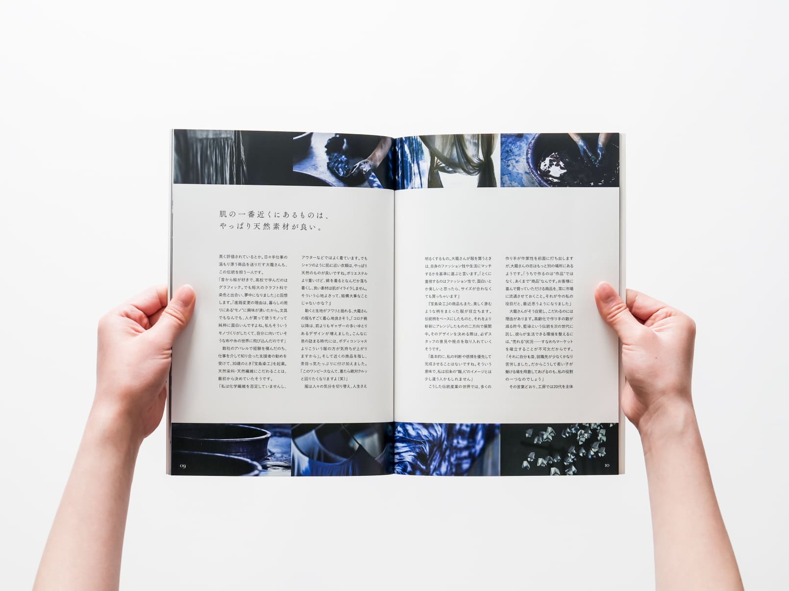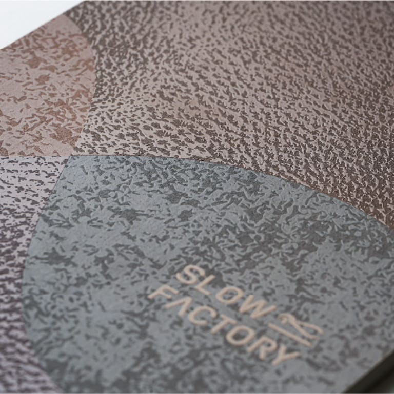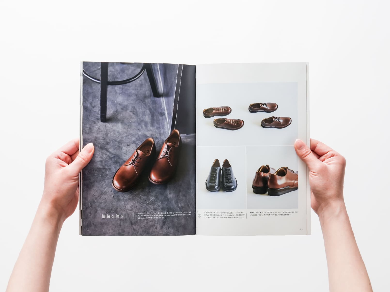 「職人の手仕事でつくられる上質な革靴」という商品の特性と、「履けば履くほど馴染む」という時間を大切にしたブランドの世界観を表現するため、親和性の高い職人を選定し取材・撮影をおこないました。表紙の模様は靴の「型紙(パターン)」を組み合わせ、皮の質感の再現にこだわり制作しています。