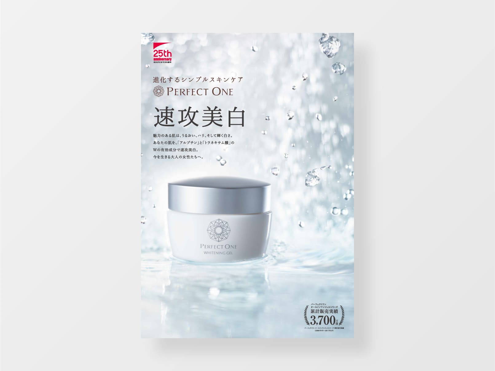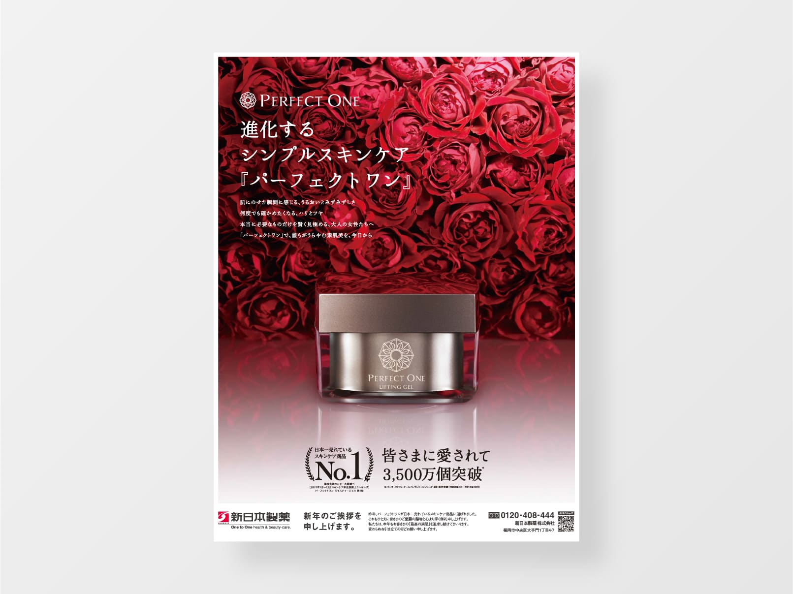 パーフェクトワンが主力商品となっていく過程のなか、ブランド力を高めるために上質な表現で制作しました。クライアントが急成長をしているさなか、社内の想いを統一するために全社員に発信するインナー向けポスターやブランドブックも制作。毎年テーマを作成し、年間を通した企業方針を一貫して発信できるようクリエイティブを進めました。