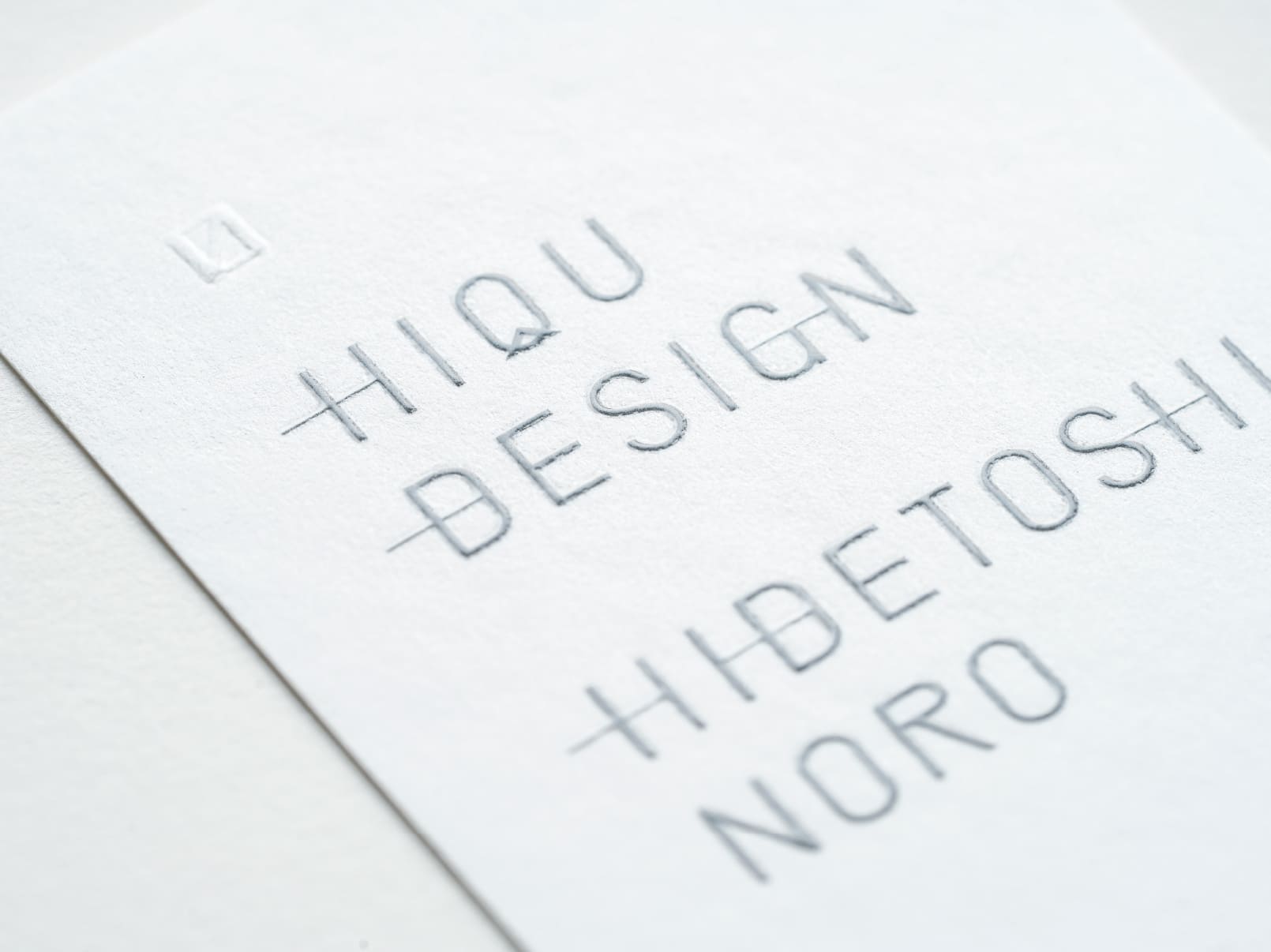 「感動するコトのために、感動するモノを創造する」という理念を示す会社の顔として。モノの細部にまで徹底してこだわる姿勢を示すひとつの制作実績、営業ツールとして。紙質、加工にまで妥協せずにつくった名刺です。社員の名前は皆、ロゴと合わせてオリジナルでつくられた「HIQUフォント」で記載されています。