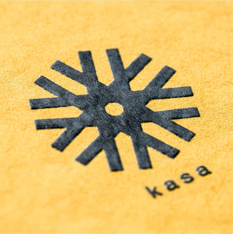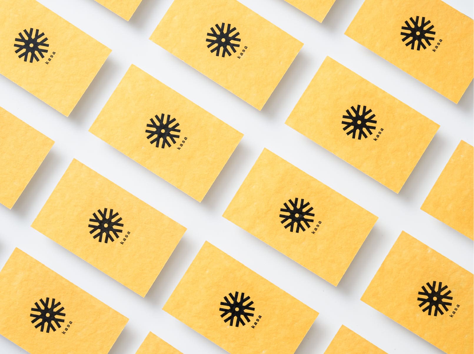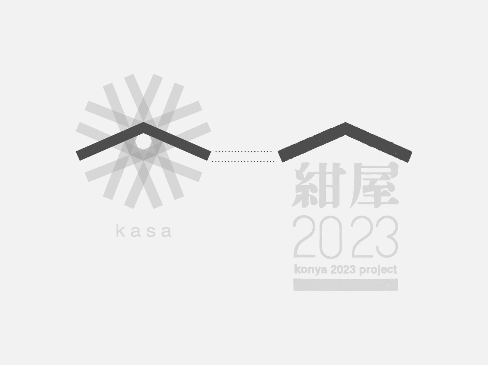 紺屋2023プロジェクトのビル内に入居していたイタリアンバルの名刺。プロジェクトロゴの屋根モチーフ部分を360°展開することで傘に見立てたロゴにしています。印象的なロゴを目立たせるよう、黒のバーコ印刷で処理を施しました。